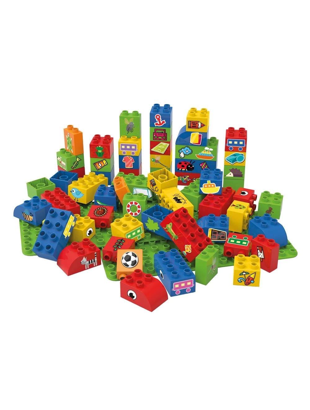 | Inhalt | Spezifikationen: Enthält 39 farbige Bausteine. Eine Grundplatte. Aufkleberblätter. Mehrere Anleitungen. Alter: 1,5 – 6 |